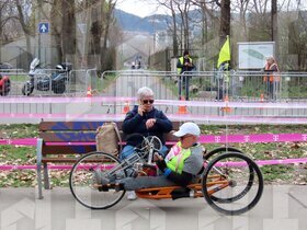 Budapest, 2026. március 21. One of the participants of the Margaret Island's Vivicittá running race. A margitszigeti Vivicittá futóverseny egyik résztvevője triciklin.